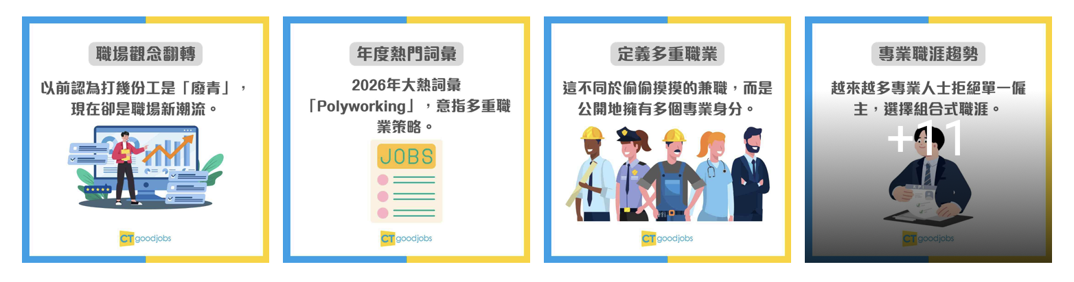 以前上一代認為,打幾份工、沒有固定正職一定是「廢青」或者「不務正業」。但來到 2026 年,如果你只是死守一份薪水,你可能已經落伍了!歐美職場正掀起一股 「Polyworking」(多重職業) 熱潮,越來越多專業人士拒絕單一僱主,選擇同時擁有多個身分。這不是打散工,而是一種高階的「職業投資組合」!